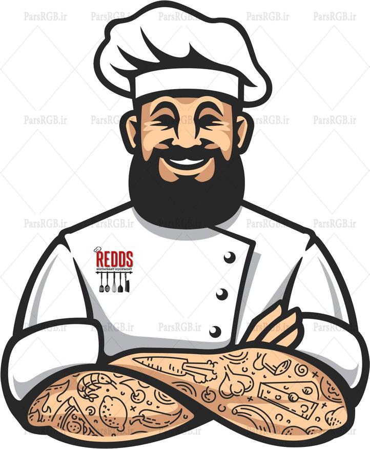 طرح تصویر png سرآشپز کد 9910 شامل اِلمان های مختلف و رنگ بندی متضاد زیبا، چشم نواز و مناسب می‌باشد.