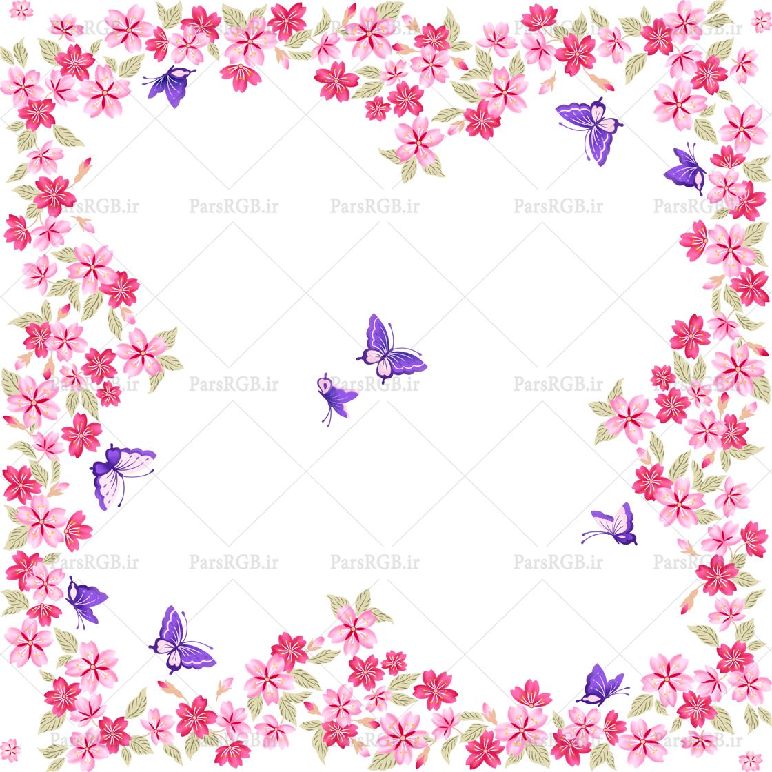 طرح تصویر png زمینه گل و پروانه کد 6570 شامل اِلمان های مختلف و رنگ بندی متضاد زیبا، چشم نواز و مناسب میباشد.